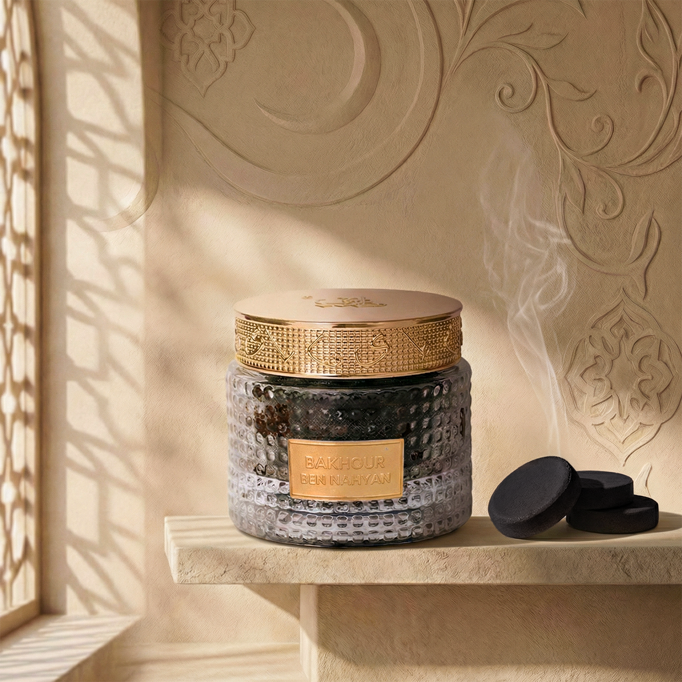 A refined expression of tradition for the sacred moments of Ramadan, where deep woody warmth and soft smoky notes create an atmosphere of serenity, reflection, and quiet luxury.